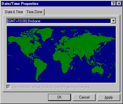 - Select the time zone for Brisbane. Notice that the option to adjust for daylight saving is not available to you. This is because Queensland does not have daylight savings time.