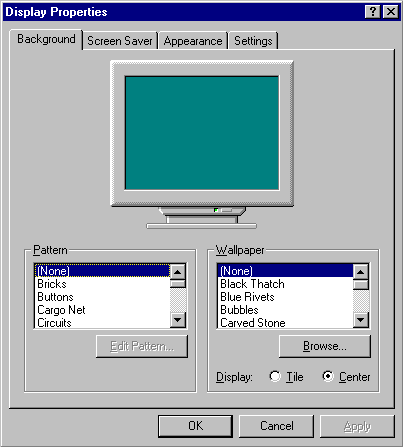 - Click on the Background tab. This is where you change the pattern on your desktop.